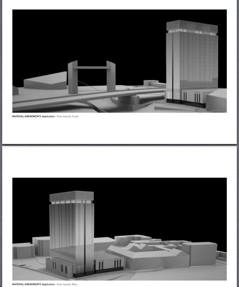 It is a truth universally acknowledged, that a plot of land standing idle must be in want of a hotel. So this site between High Street and the river has been earmarked for an "iconic" 22 storey hotel and conference centre [ 1 ]. Well in the intervening six months 22 has become 18 and no doubt by the time it ever gets built it'll be 5 or 6. Here's an impression of the latest scheme, it's a wonderful box shape don't you think, so original and so in keeping with the area. Readers with long memories may recall a proposal I mentioned to build a hotel complex a little further up the river at Clarence Mill two years ago almost to the day [ 2 ]; well nothing has come of that little plan either.